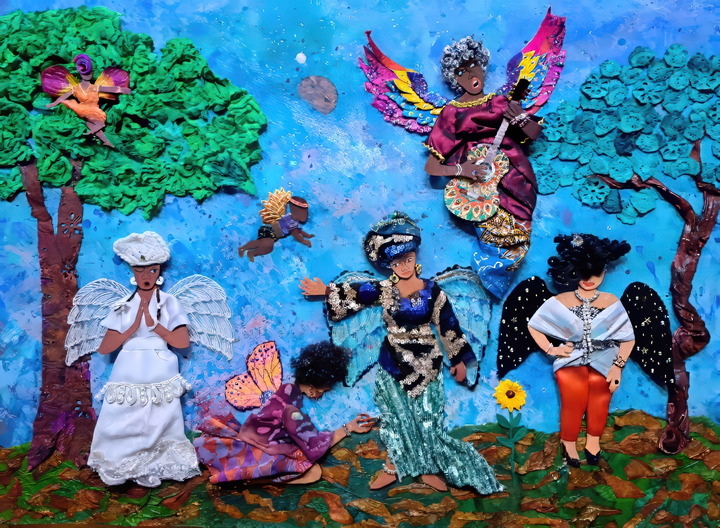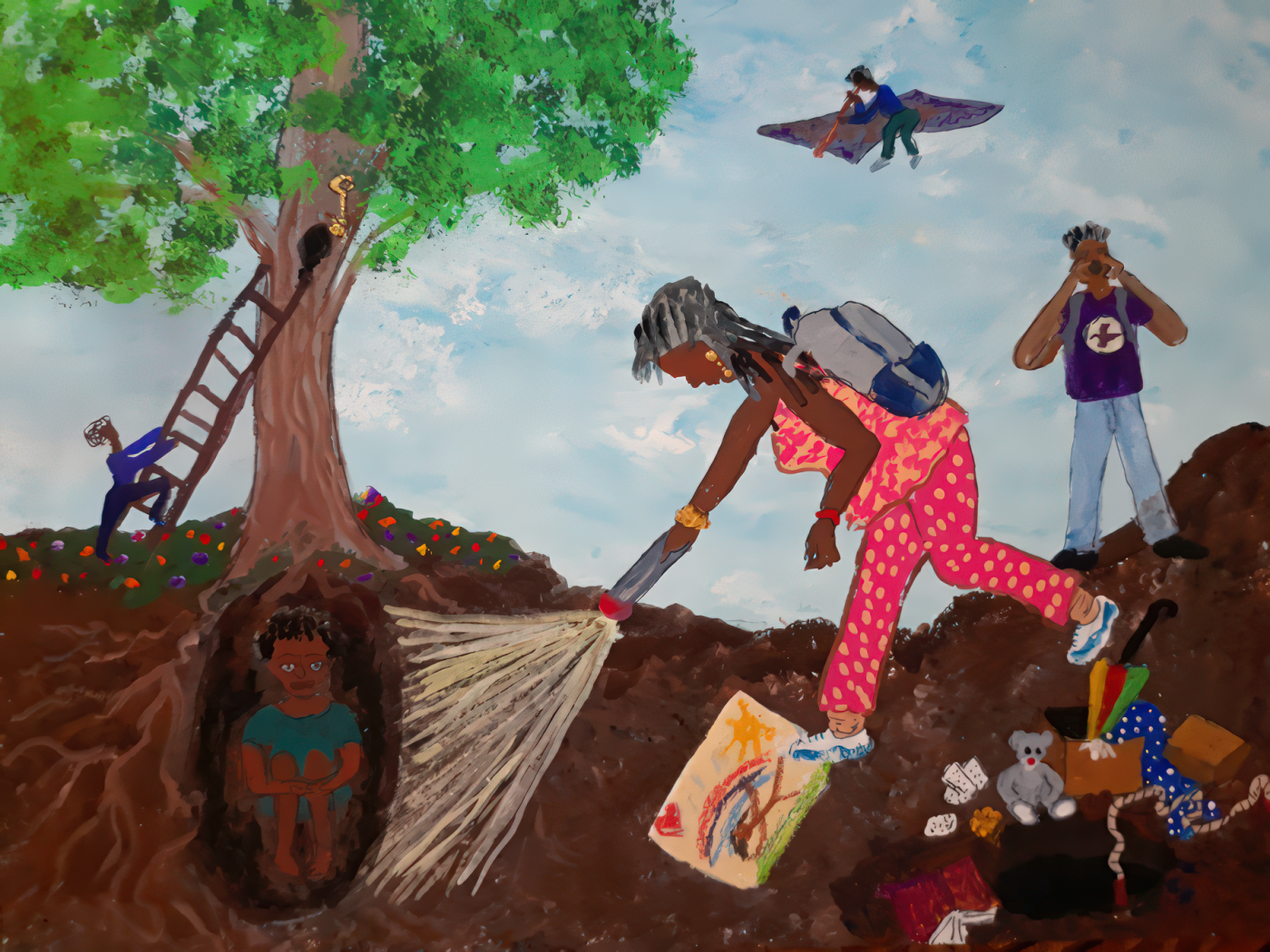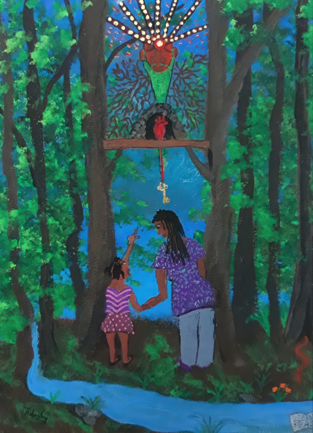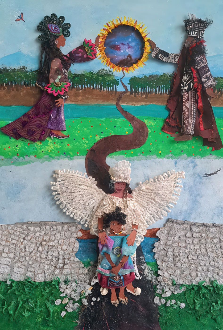 Singletary’s paintings, tableaus, and wands explore memory, spirituality, and cultural continuity. Her work has been exhibited at venues including The Children’s Art Carnival, Hamilton Landmark Galleries, Rush Gallery, the LeRoy Neiman Art Center, Kenkeleba Gallery and Akwaaba Gallery.